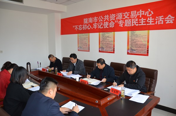 為了開好此次專題民主生活會,中心黨組做了扎實有效的會前準備工作,制定了《中共隴南市公共資源交易中心黨組關(guān)于“不忘初心、牢記使命”專題民主生活會方案》,開展了會前規(guī)定篇目的政治理論學習和談心談話,征求了意見建議,班子和班子成員認真撰寫對照檢查材料,切實為開好本次專題民主生活會打下了堅實基礎(chǔ)。