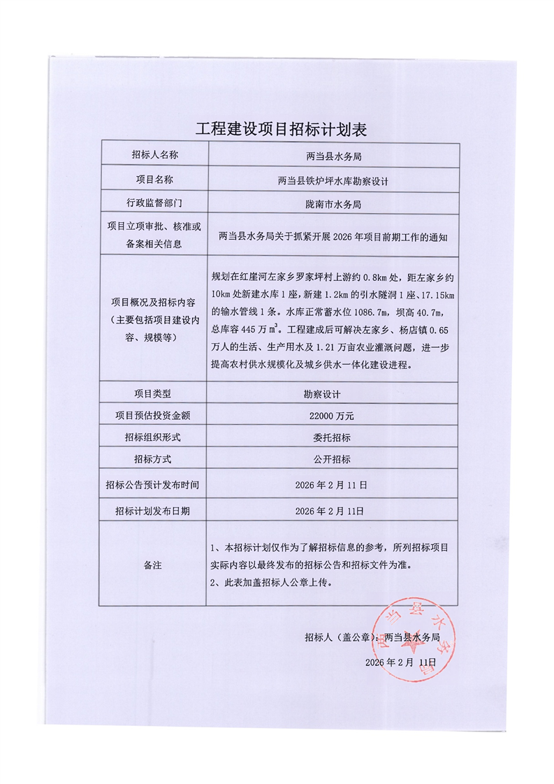 兩當(dāng)縣鐵爐坪水庫(kù)勘察設(shè)計(jì)