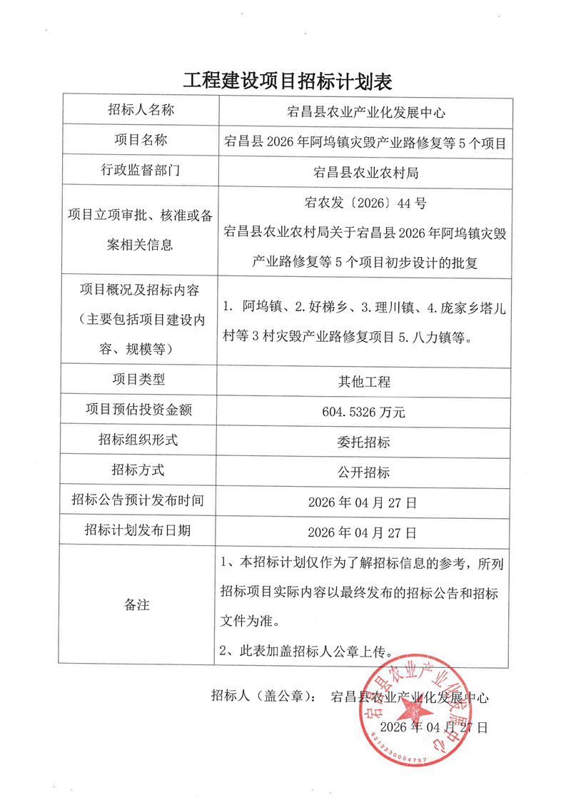 宕昌縣2026年阿塢鎮(zhèn)災(zāi)毀產(chǎn)業(yè)路修復(fù)等5個(gè)項(xiàng)目