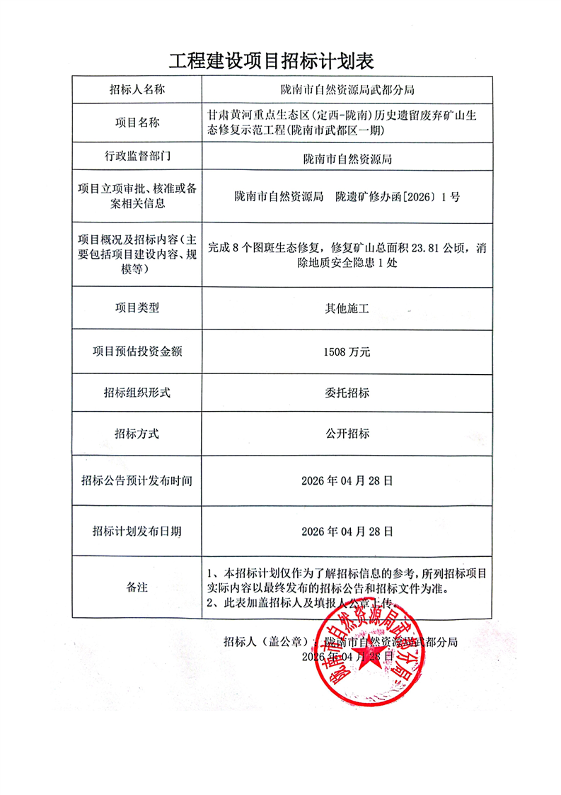 甘肅黃河重點(diǎn)生態(tài)區(qū)(定西-隴南)歷史遺留廢棄礦山生態(tài)修復(fù)示范工程(隴南市武都區(qū)一期)