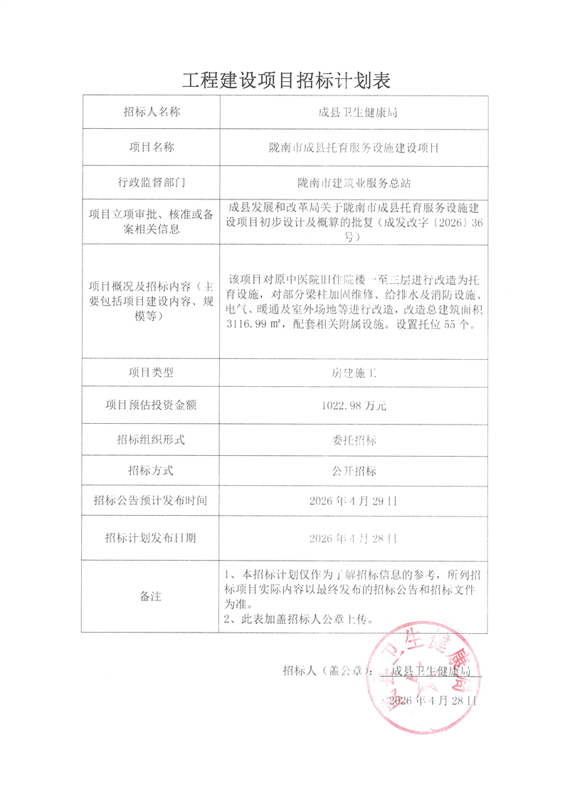 隴南市成縣托育服務(wù)設(shè)施建設(shè)項目